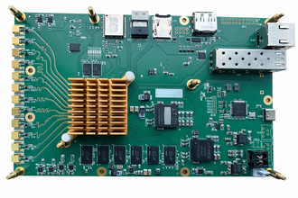 Плата приема, цифровой обрабоки и передачи радиосигналов. Выполнена на базе микросхемы Zynq UltraScale+ RFSoC фирмы AMD/Xilinx.